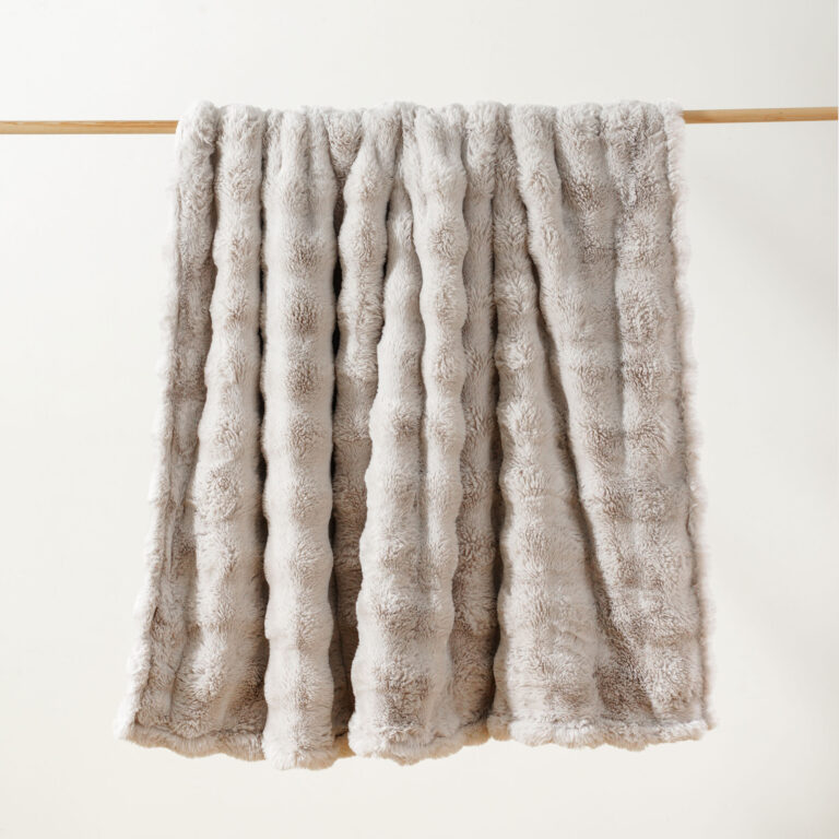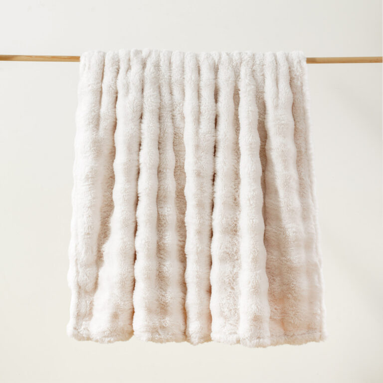 To elevate its style even further, this blanket features a subtle bubble-cut texture sculpted into the fibers, creating depth, dimension, and a refined statement piece for any interior. Draped across a sofa, folded at the end of a bed, or wrapped around your shoulders, it delivers the perfect balance of softness, warmth, and sophistication.
